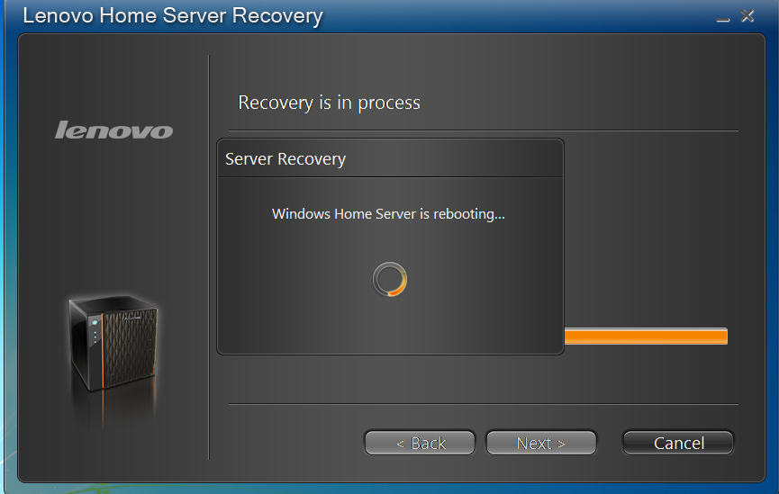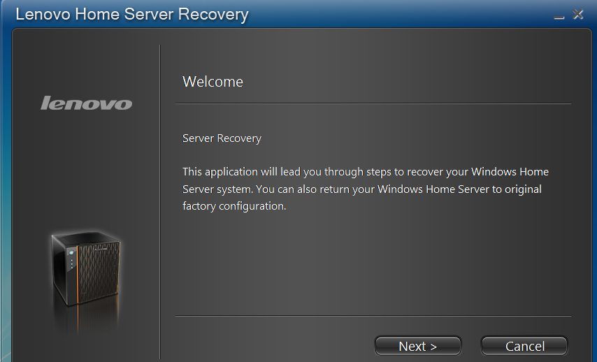 In the event that something happens to the server and a reinstallation of the server software is needed, Lenovo provides a DVD that will perform the recovery. The recovery software is wizard driven, and is very straightforward. Recovery does take some time, depending on network configuration, and other factors, so be prepared to go for a walk, drink some coffee, read a book, or watch paint dry.