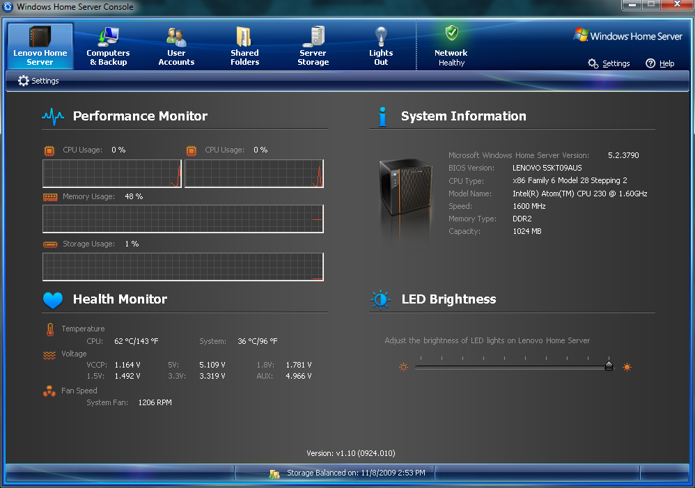 Like all of the Home Server offerings out there that use Windows Home Server, this one is no exception to how easy it is to use. Because Windows Home Server is designed to be as consumer friendly as possible, ease of use is very important. Lenovo does a great job of making the server easy to use, with the only exception being the confusion on the software install menu. There is a piece of software that Lenovo includes called EasyAccess, and this software automatically makes the shares on the server appear in your Computer window. Their tab they add to the Windows Home Server Console is very well thought out, and presents important information very clearly.